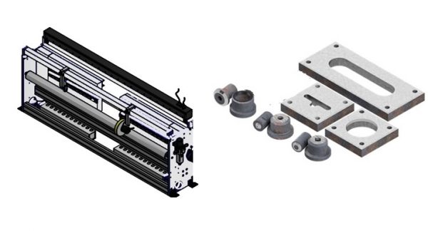 This is a very smart solution to be installed on bag making machines where is possible to move both side units using a handle wheel, moving at the same time all the punches without having to realigning them.
