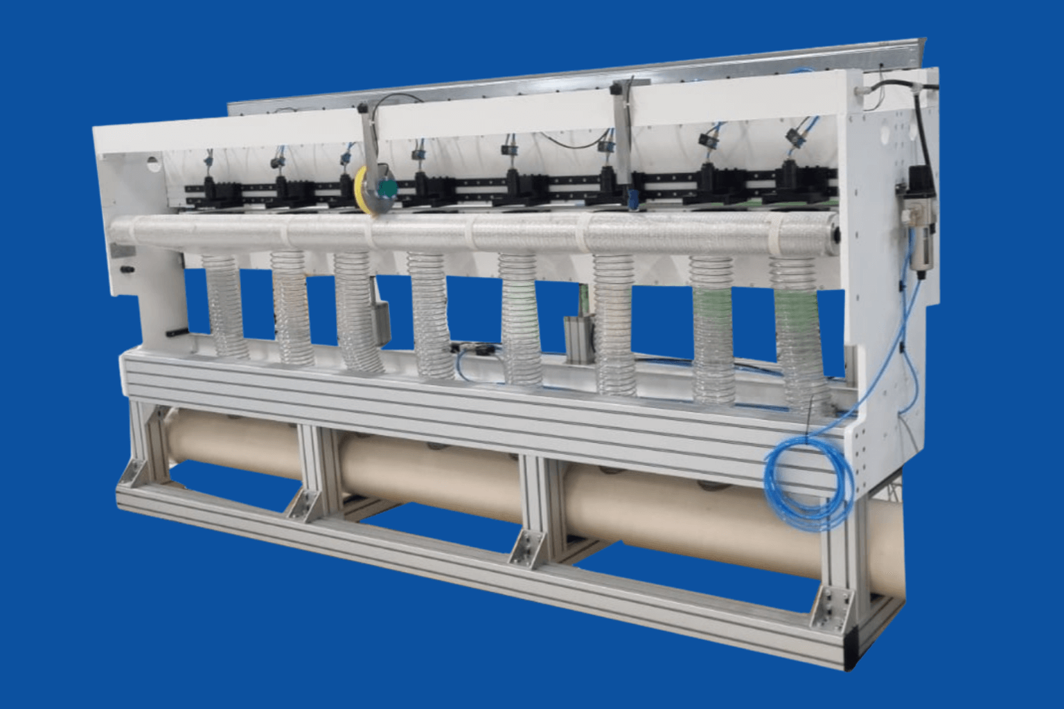 È la soluzione perfetta per fare fori grandi come nel caso del film per pacciamatura. La struttura è più robusta e molto solida. Di solito tale macroforatore è installato su linee di estrusione. È adatto per eseguire fori da 3 mm fino a 100 mm. I punzoni si possono spostare facilmente lungo la struttura per la messa a punto.